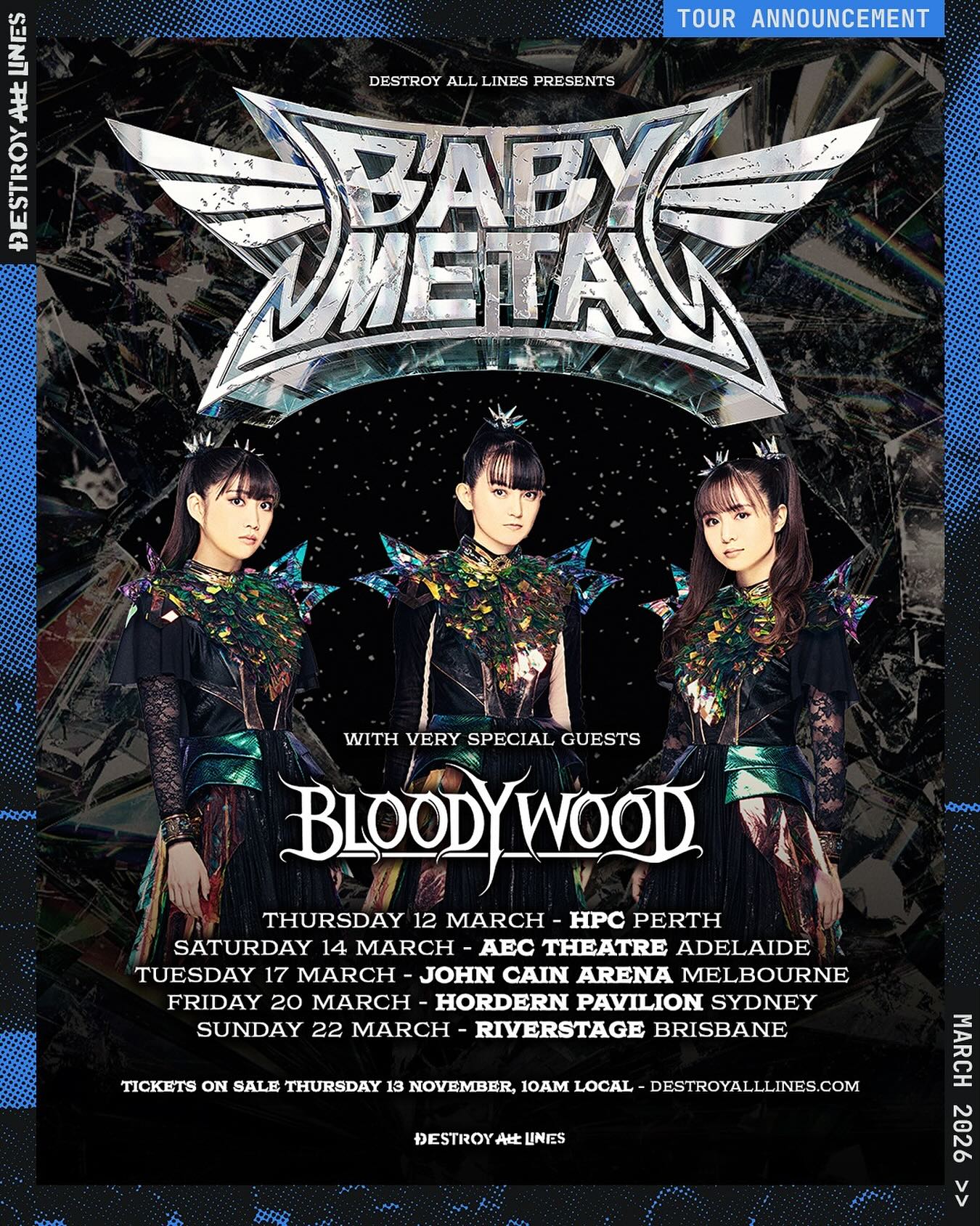 BABYMETALが3月12日から3月22日までオーストラリアでヘッドライン公演に帰ってきます。スペシャルゲストにBloodywood