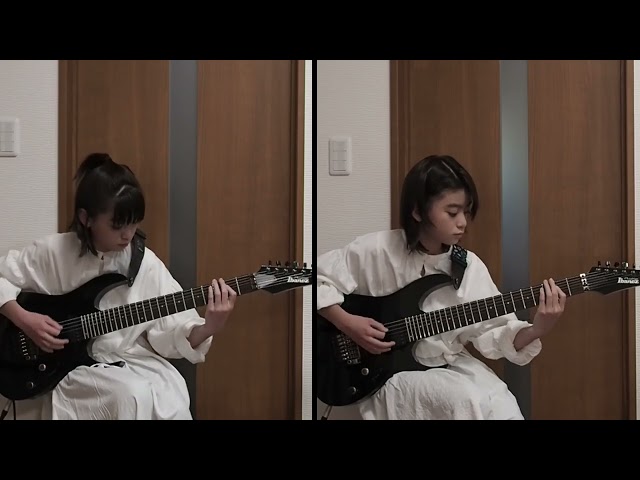 2つのギターのパートを弾いた動画を合わせて、見事にツインギターを再現しています。