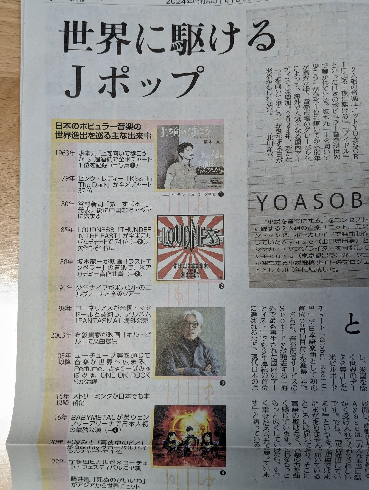 坂本九、LOUDNESS、BABYMETALがあったらこそYOASOBI、Adoの国際的評価に繋がってるのだよ、そこのお嬢ちゃん!m9っ`Д´) pic.twitter.com/wa1YsUyqsp— 官能小説家へべれけ@社会復帰への道 (@tanikaze_hebere) January 1, 2024