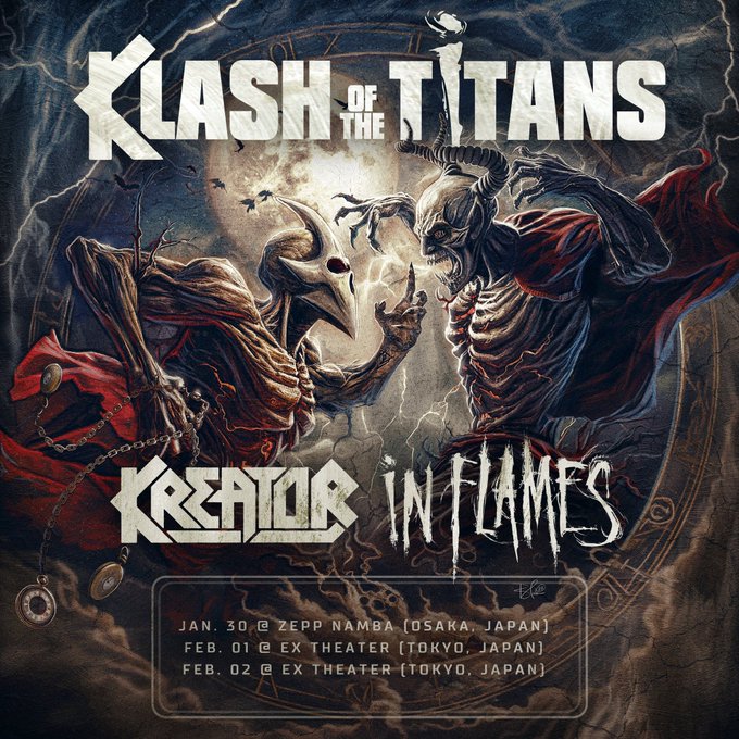 IN FLAMES × KREATOR の KLASH OF THE TITANS 、本日スタート❗大阪、盛り上がっていきましょう🤘🔥