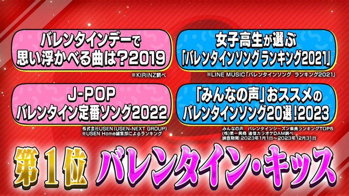 撮影時期と放映時期のタイムラグがあるから仕方ないけど、Adoと@onefiveが新曲のチョコレート楽曲を発表したことにも触れて欲しかった気分