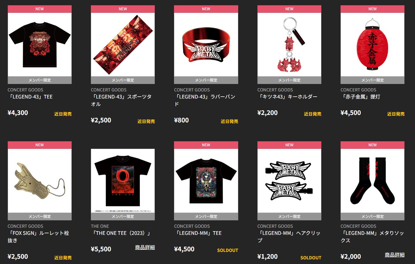 『BABYMETAL WORLD TOUR 2023 – 2024 TOUR FINAL IN JAPAN LEGEND – 43』グッズの一部、通信販売決定!!