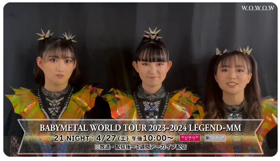 MOMOMETALが21歳になって初のライブをどうぞお見逃しなく🦊https://t.co/8K1UzihcCE#WOWOW @BABYMETAL_JAPAN pic.twitter.com/DojvkFZXIN— WOWOW MUSIC (@wowow_mj) April 14, 2024