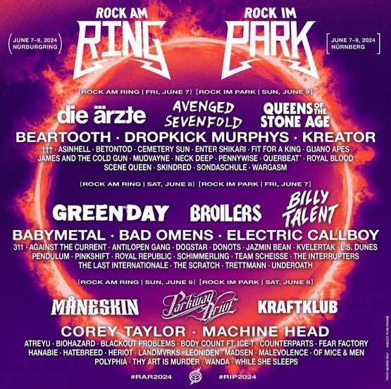 BABYMETALはいずれもMANDORAステージ(第2ステージかな)で、6/7(金)Rock im Park19:55-20:55、6/8(土)Rock am Ring21:10-22:10のもよう#BABYMETAL #RAR2024 #RIP2024https://t.co/BEAK1ZVAeP https://t.co/lsYkDSTyoV pic.twitter.com/pe9jlS3unc— ma-metal🍥🦊🏮|LEGEND-43両日|LEGEND MM DV|FOX_FEST両日 (@mametal3) April 17, 2024
