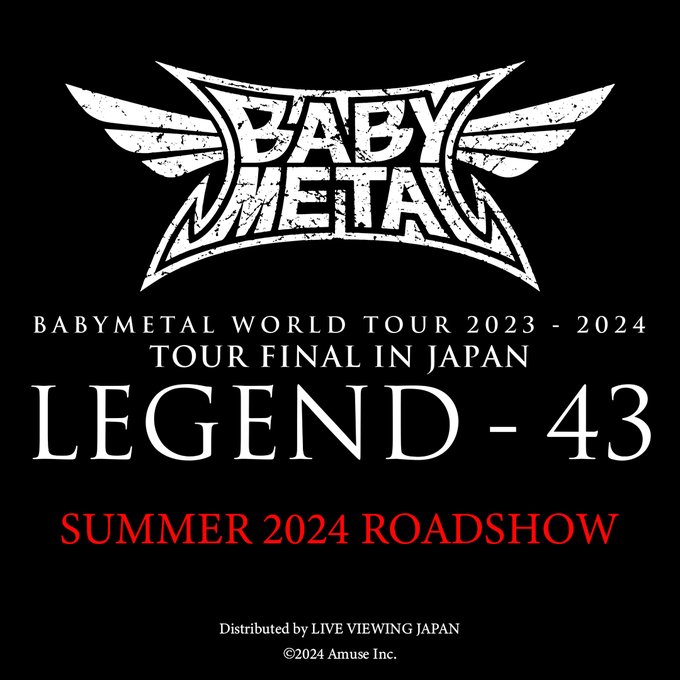 BABYMETALが2023年から2024年にかけて、自身最大規模のワールドツアー<BABYMETAL WORLD TOUR 2023 – 2024>を開催した。同ワールドツアーの締め括りとなった沖縄公演<BABYMETAL WORLD TOUR 2023 – 2024 TOUR FINAL IN JAPAN LEGEND – 43>の模様が、2024年夏にライブフィルムとして全国劇場で公開することが発表となった。