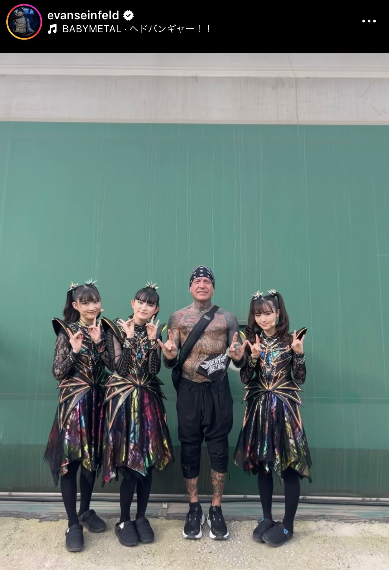 ベビメタがついにゴリゴリのハードコアのEvan Seinfeldとズッ友!!#BABYMETAL#Biohazard pic.twitter.com/w6f1fvVErQ