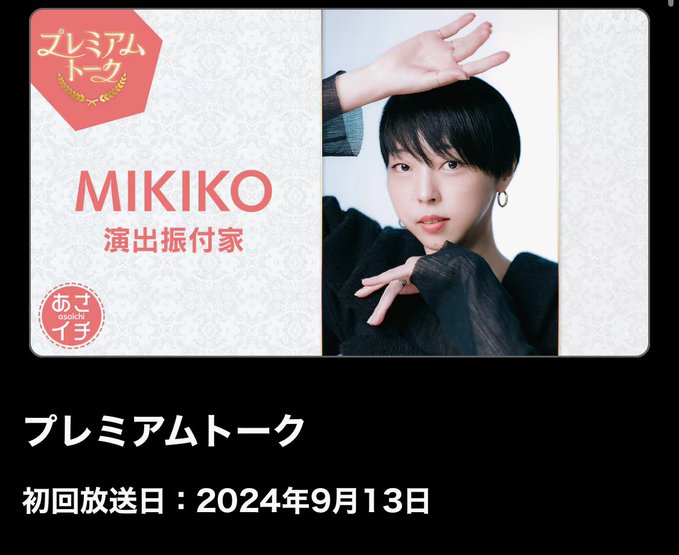 演出振付家・MIKIKOさん pic.twitter.com/UhS7vuDssM— ShinOneMetal 真空壱多老🦊🌸👹1️⃣5️⃣1️⃣8️⃣ (@shinonetaro) September 7, 2024