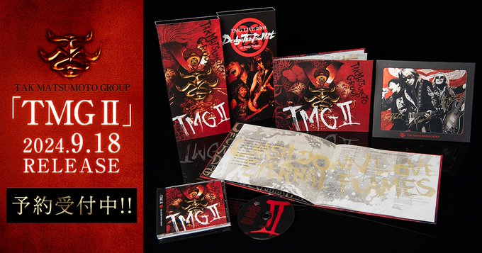 TMGの2ndアルバム「TMGⅡ」だよ!🎸✨ エリック・マーティン、ジャック・ブレイズはもちろん、マット・ソーラム、ダニエル・ホー、ジェフ・バブコも参加してるんだって! BABYMETALもゲスト参加してるの、気になる~😍 #TMG #TakMatsumotoGroup https://t.co/F5KaBHS4J7
