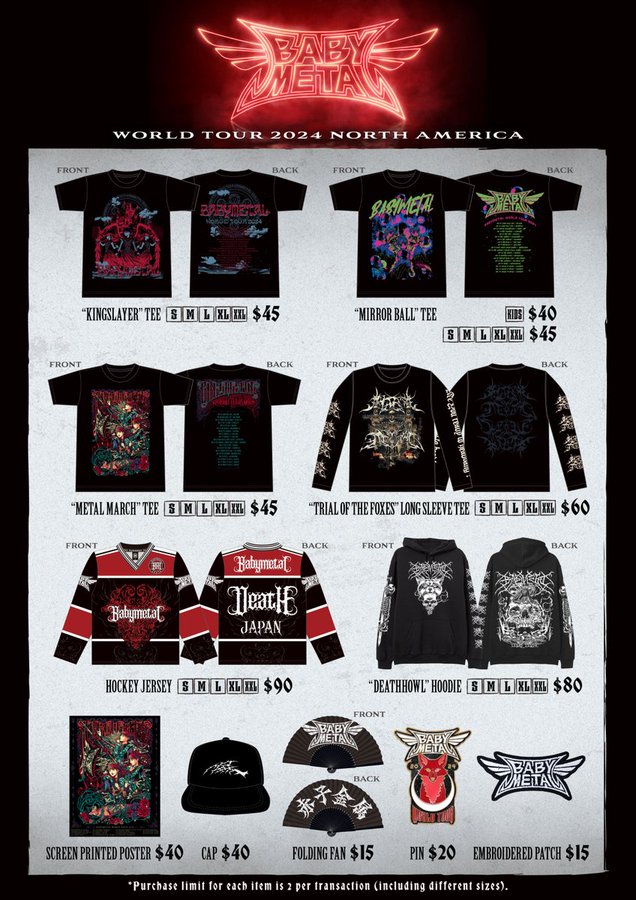 ”BABYMETAL WORLD TOUR 2024 NORTH AMERICA” Merchandise