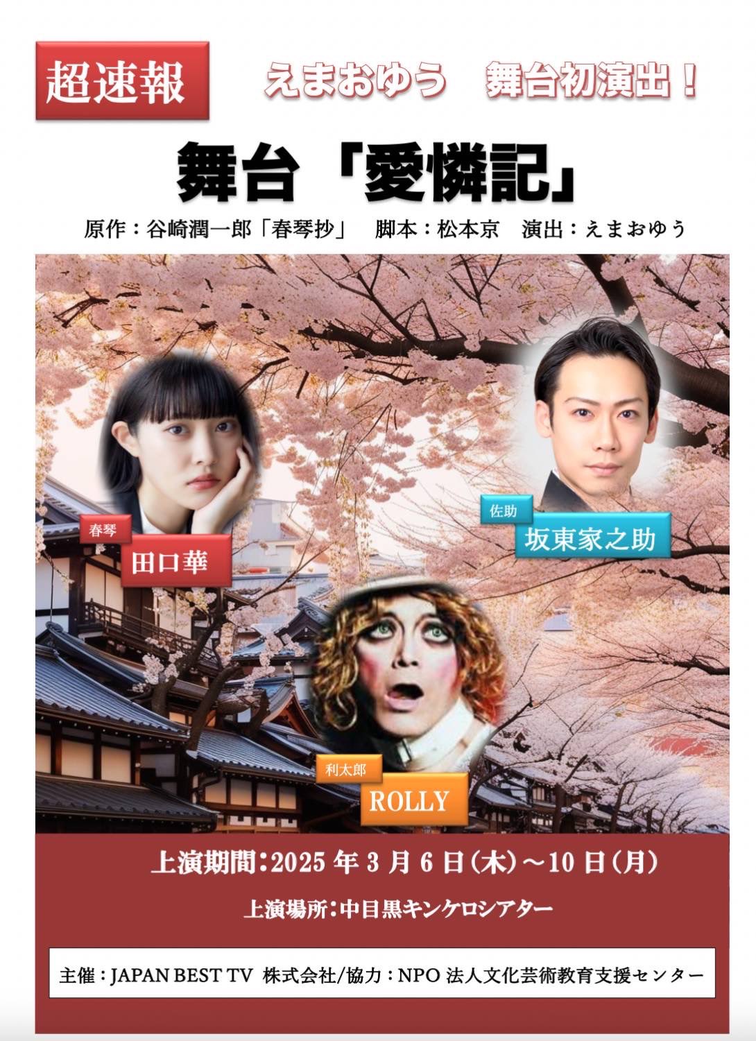 田口華さんがヒロイン役で出演するという、舞台「愛憐記」ですが、ポスターが発表されましたがポジションがセンターで、座長じゃないですか!