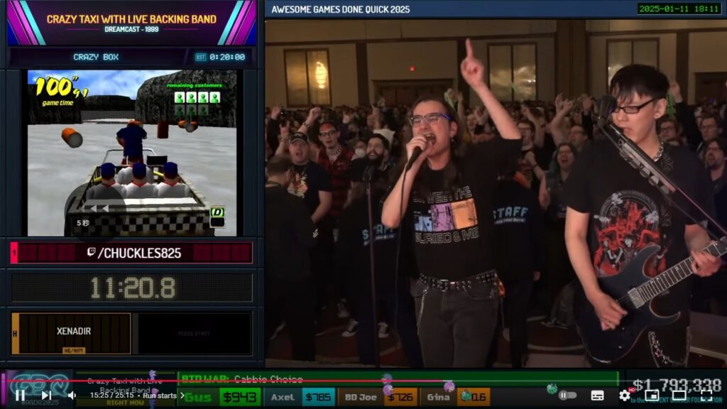 “バンド生演奏”をバックに『クレイジータクシー』へ挑むRTAが世界最大級のRTAイベント「AGDQ2025」で披露され会場・配信ともに大盛り上がり