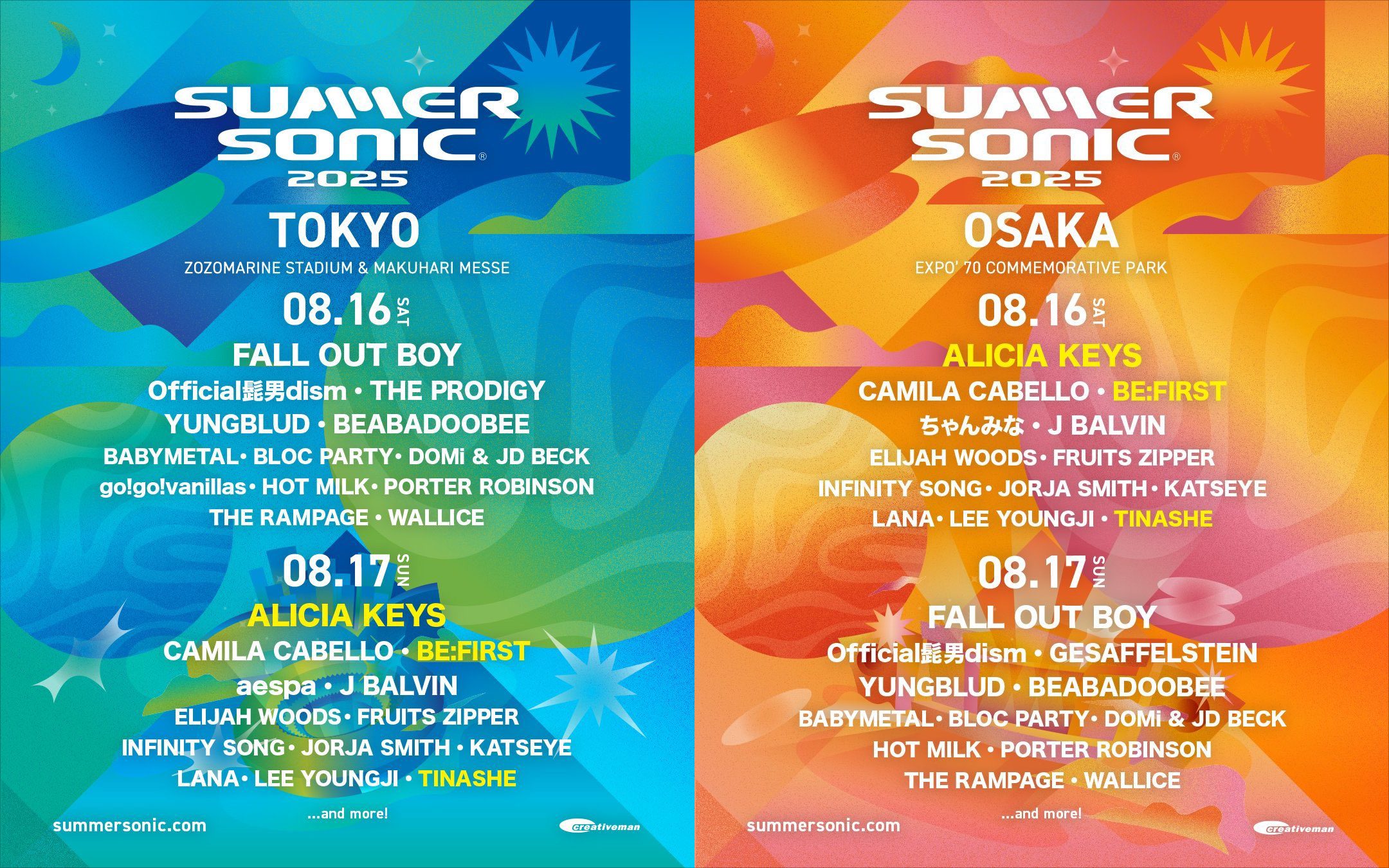 恒例の夏フェス『SUMMER SONIC 2025』(8月16・17日、千葉・ZOZOマリンスタジアム&幕張メッセ/大阪・万博記念公園)の出演アーティスト第4弾が、17日に発表。アリシア・キーズがヘッドライナーとして決定したほか、BE:FIRSTら追加アーティストも発表された。