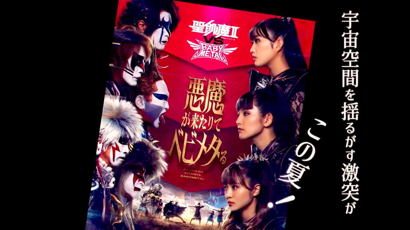 これは、本日4月12日に東京・東京ガーデンシアターで開催された、聖飢魔Ⅱの地球デビュー40周年記念期間限定再集結全国大黒ミサツアー「THE END OF SEASON ONE」初日公演で発表されたもの。会場の大画面には聖飢魔IIとBABYMETAL、両陣営が激突を前に向き合い火花を散らす映像が映し出され「敵なのか!味方なのか!?」の文字が踊った。ライブは1日目が「遭遇 -Encounter-」、2日目が「衝撃 -Impact-」というタイトルで実施される。