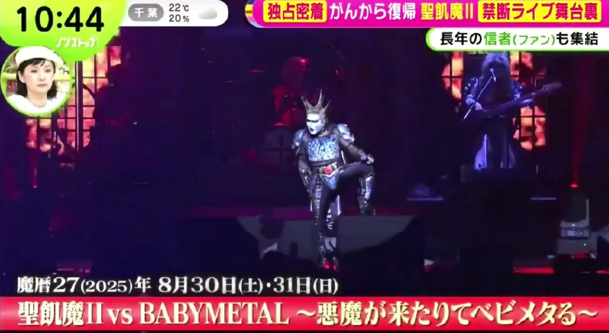 さっきノンストップで聖飢魔IIのライブに密着やってて、最後に8/30・31日のBABYMETALとのライブの紹介もしてた