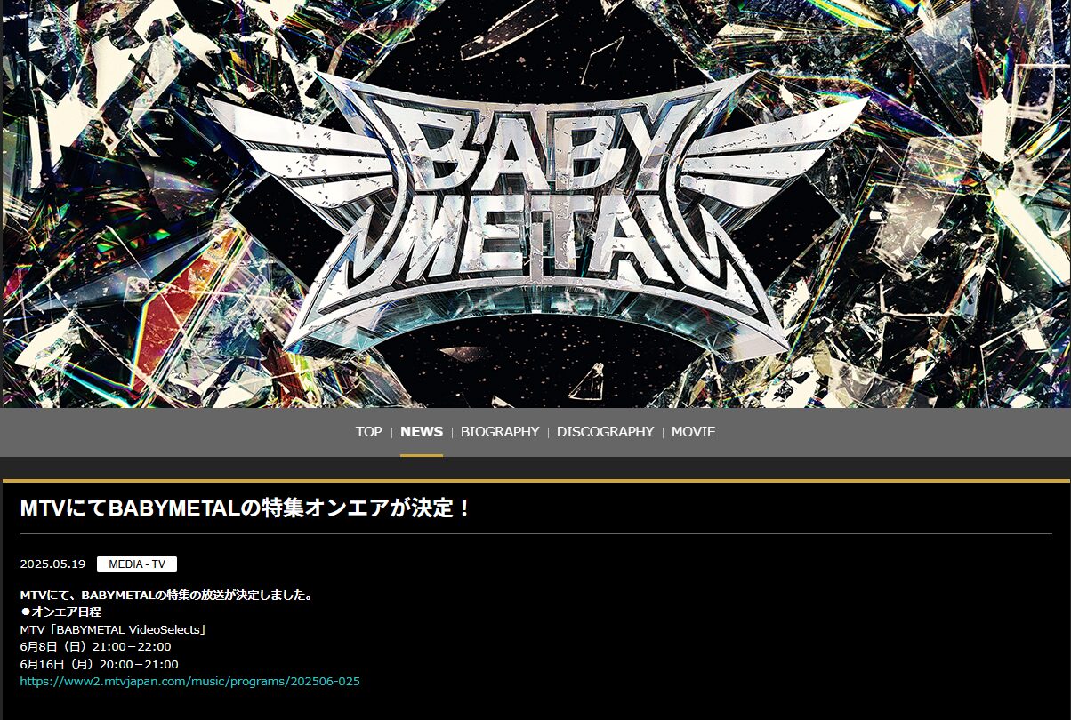 MTVにてBABYMETALの特集オンエアが決定! – #BABYMETAL https://t.co/oyYQ2yO50J— けいたん🦊 @ 休止中/not living in real time. (@soulbicycle) May 19, 2025