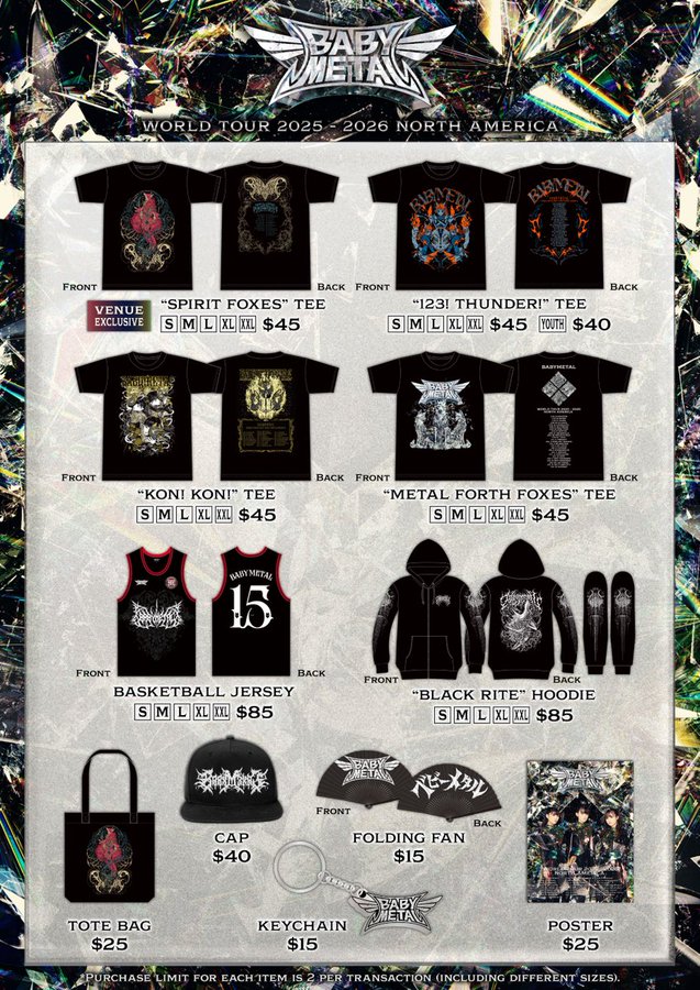 "BABYMETAL WORLD TOUR 2025 – 2026 NORTH AMERICA" Merchandise Announcementhttps://t.co/sTapbyuK3s#BABYMETAL #BABYMETALWORLDTOUR2025 pic.twitter.com/MEiwkwNykz