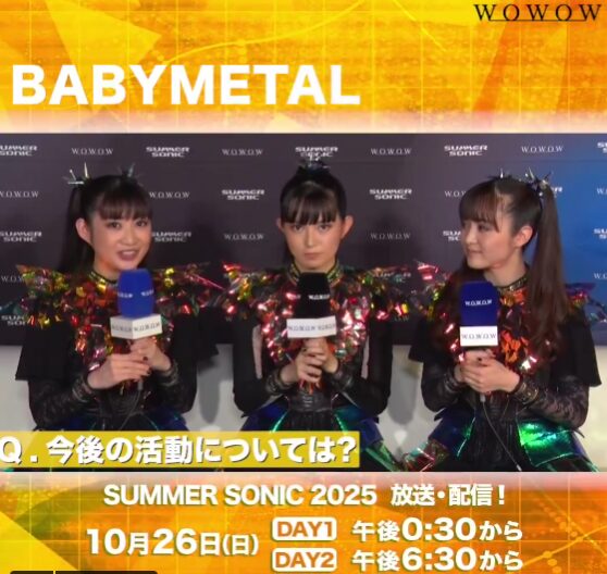 お楽しみいただけます🙌#BABYMETAL @BABYMETAL_JAPAN— WOWOW MUSIC (@wowow_mj) October 14, 2025