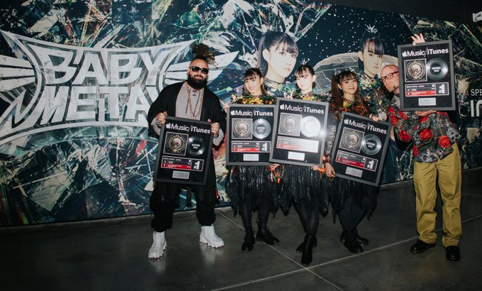 >この曲は既にトップ#5にランクインしている全米ロックラジオで初めて日本語の歌詞をフィーチャーした曲として、アメリカで歴史に名を刻んでいる。この異文化間のbreakthroughと、feat.BABYMETALの「The End」の背後にある世界的な勢いを称えるために特別な盾の贈呈を行い音楽が本当に普遍的である事 https://t.co/LsXgypijTP