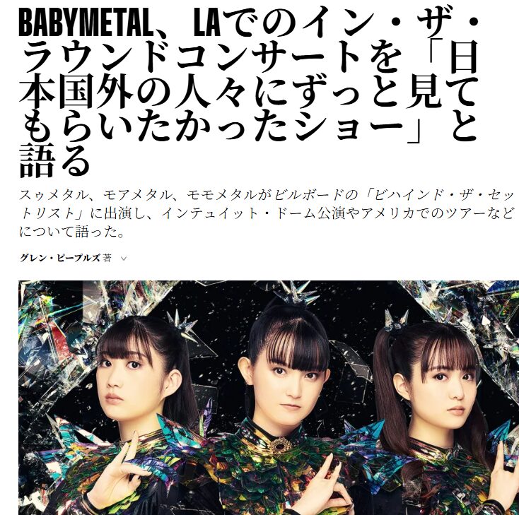 Billboardから、Spotifyなどの各サービスで公開されてるBABYMETALへのINTUIT DOME公演に関するインタビューの内容をまとめたWEB記事かな