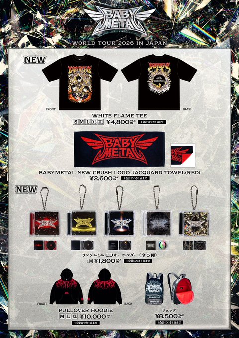 「BABYMETAL WORLD TOUR 2026 IN JAPAN」グッズ販売決定!!🦊https://t.co/wrNW99UEqi#BABYMETAL pic.twitter.com/IaVCePRlwZ