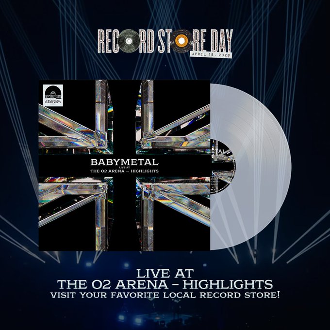 この投稿はBABYMETALのO2アリーナ公演ハイライトをRecord Store Day 2026限定リリースとして告知するもので、クリアビニール仕様の12インチEP(限定3000枚)となっている。