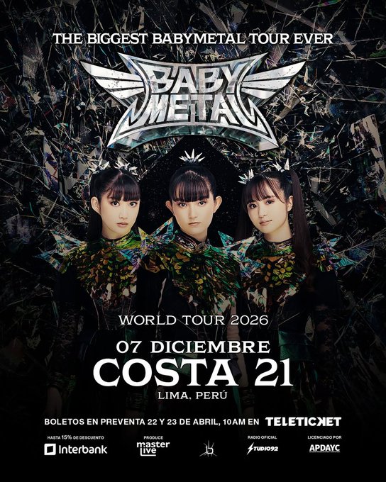 BABYMETALは、ヘヴィメタルとアイドルポップを融合させた「カワイイメタル」と呼ばれるスタイルで、日本の音楽界で最も革新的なグループの一つとしての地位を確立した。その影響力は国境を越え、重要な国際チャートや権威あるステージに名を連ねている。 2024年のペルー訪問時、BABYMETALは公演チケットを完売させ、パルケ・デ・ラ・エクスポシシオンの円形劇場でのパフォーマンスでペルーの人々に忘れられない印象を残した。