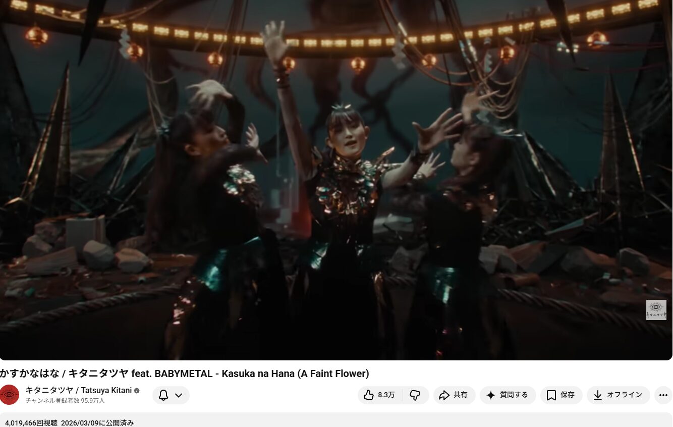 かすかなはな / キタニタツヤ feat. BABYMETALのMVが400万再生突破
